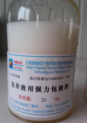 該產品是本公司用于對付強造漿性地層和水敏性坍塌地層的主要產品,其化學結構屬丙烯酸鹽高聚物類,它的主要特點是以乳液形式存在,這種產品之所以要做成乳液形式的原因主要有兩點。首先, 它成功地解決了高聚物的分子量與溶解速度之間的矛盾;以往我們使用的聚合物都是粉狀的,分子量都做不高也不允許太高,原因是如果分子量做的太高,處理劑溶解起來會很困難,一部分漂浮在鉆井液罐表面,相互粘結成幾乎不再溶解的團塊,一部分混入鉆井液來不及完全溶解就被固控設備除掉,只有部分溶解并發揮作用,這樣致使鉆井液得不到及時處理,也影響施工,于是國內大部分高聚物的分子量都在300到500萬之間,而這樣低的分子量是難以實現強抑制性的,這也是國內聚合物鉆井液使用不徹底的主要原因。其次,高聚物做成乳液形式方便了現場操作。一般來講,高聚物的加入都采取“少食多餐”的原則,即經常性的細流加入。因為高聚物的主要作用就是吸附在鉆屑表面,抑制其分散,它是不斷地在消耗的,所以要求經常、均勻地加入,以保證鉆井液中始終保持一定的含量,否則一旦中途斷檔,地層開始造漿后,就只有采取放鉆井液,加水稀釋處理的辦法了。而COATER一般是50kg桶裝液態,桶底部有一放料口,只要將處理劑桶置于合適位置,擰開絲蓋,處理劑就流出,調節一下流量就可以在一定時間內完成處理作業,使用非常方便。